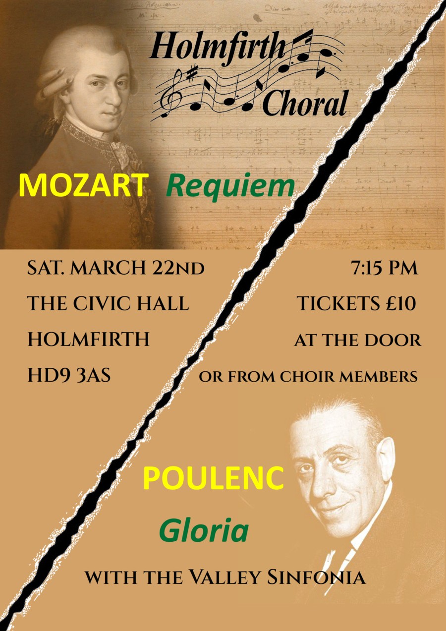 The third concert of the 24/25 season will be a performance of Mozart’s Requiem and Poulenc’s Gloria.  Two contrasting pieces, but both highly entertaining.